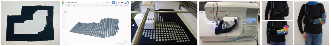 Our Fabric-Lego fabrication method of integrating 3D-printing with traditional sewing practices to create customizable